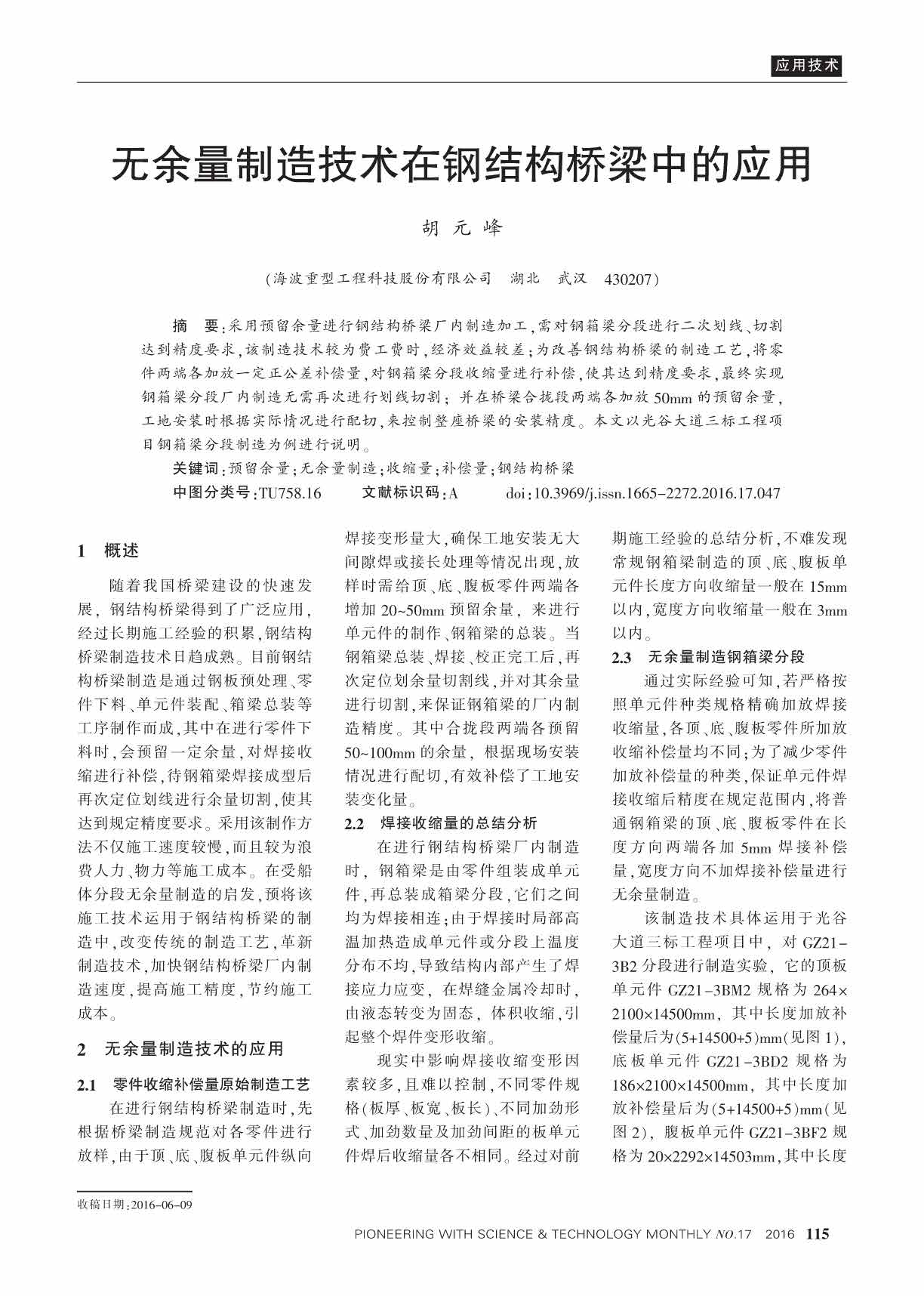 無余量制造技術(shù)在鋼結(jié)構(gòu)橋梁中的應(yīng)用