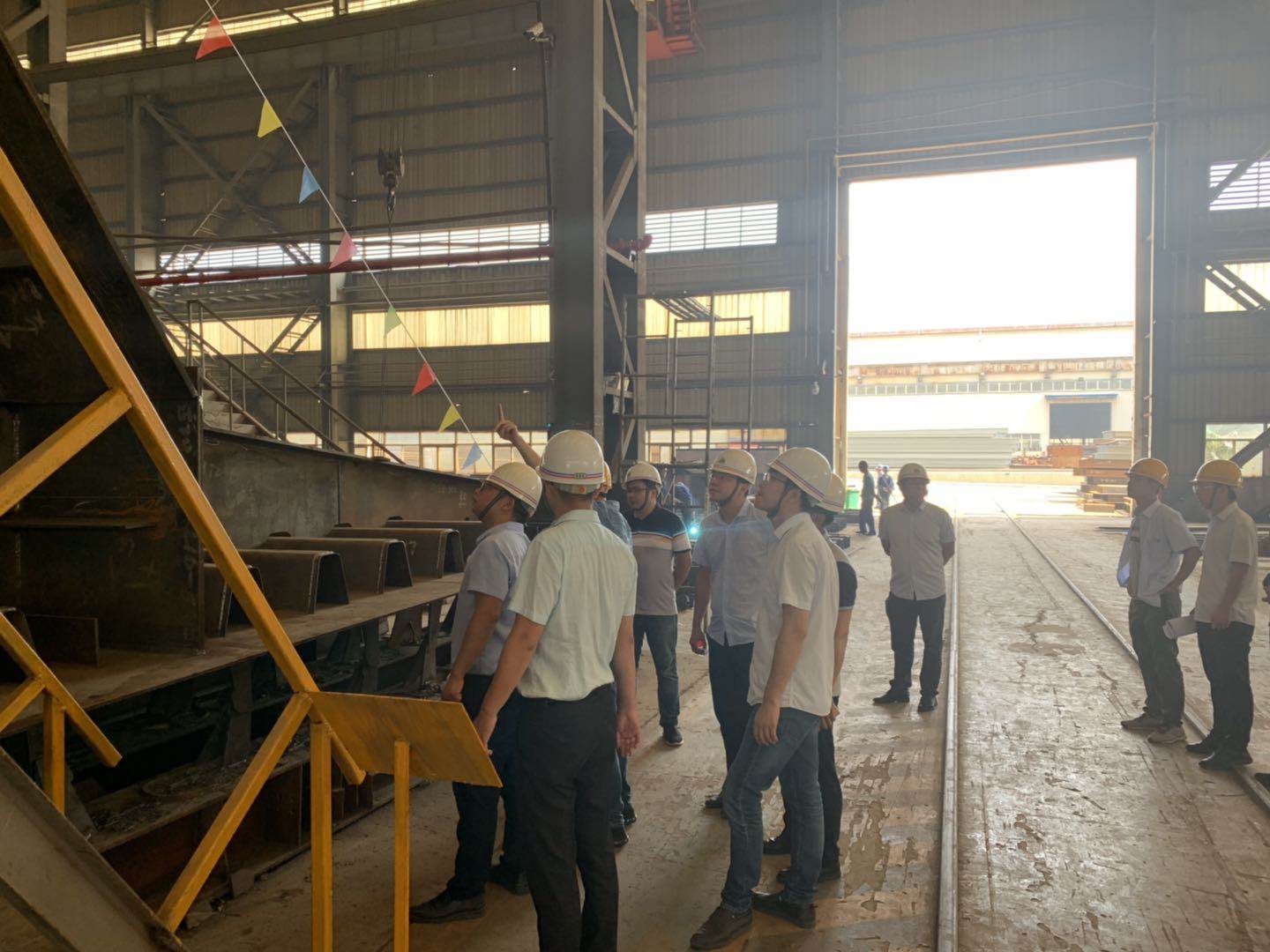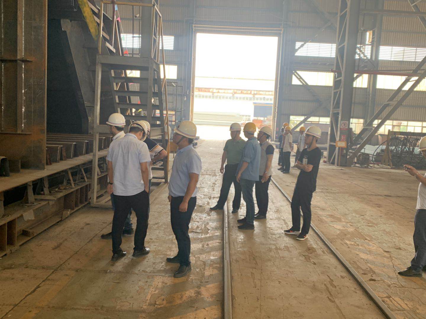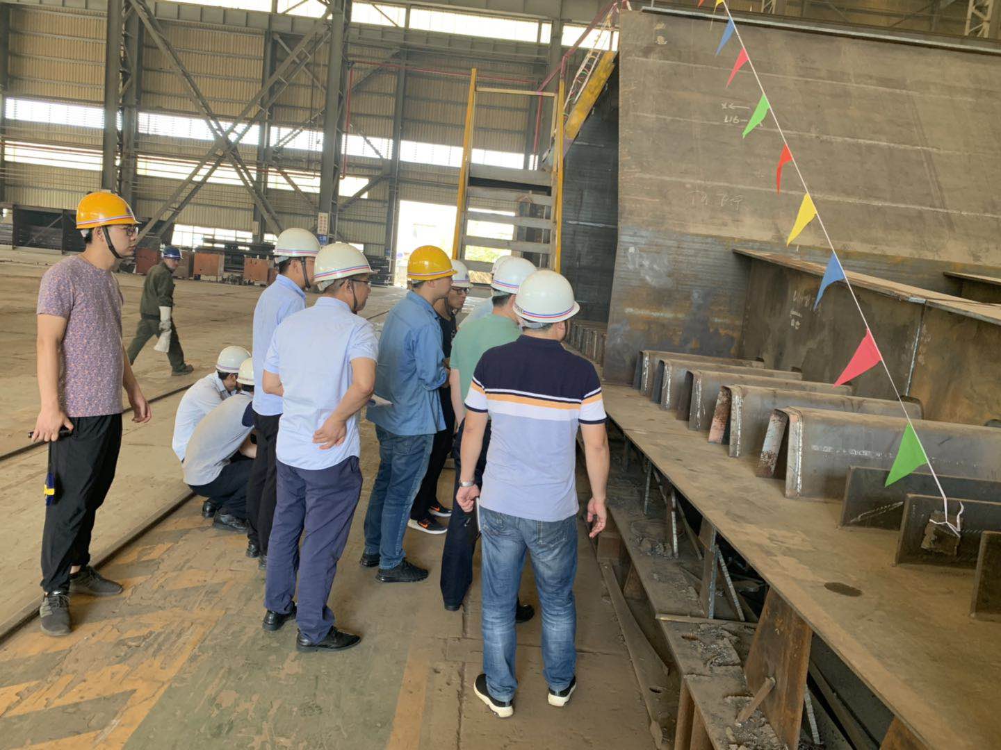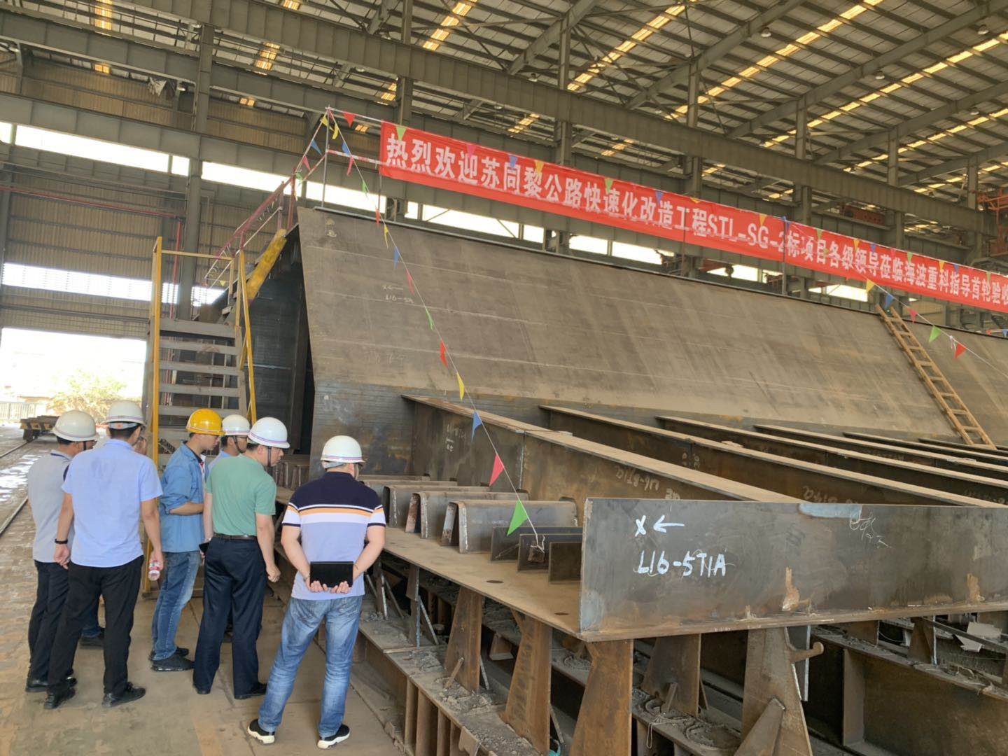 2019年7月10日,江蘇緯信工程咨詢有限公司組織在海波重科召開(kāi)蘇同黎公路快速化改造工程STL-SG-02標(biāo)(L16聯(lián)5-9節(jié)段)首輪制造總結(jié)會(huì),與會(huì)人員查看了現(xiàn)場(chǎng)首輪鋼箱梁構(gòu)件,聽(tīng)取了制造單位的匯報(bào),審閱了相關(guān)資料,討論形成最終意見(jiàn):《蘇同黎公路快速化改造工程STL-SG-02標(biāo)工程鋼箱梁首輪制作施工》內(nèi)容齊全,資料詳實(shí);首輪鋼箱梁(L16聯(lián)5-9節(jié)段)整體尺寸、線形符合設(shè)計(jì)及規(guī)范要求;構(gòu)件檢驗(yàn)資料齊全有效,結(jié)構(gòu)、外觀良好,焊縫無(wú)損檢測(cè)合格。如圖: