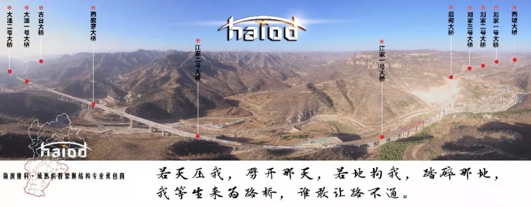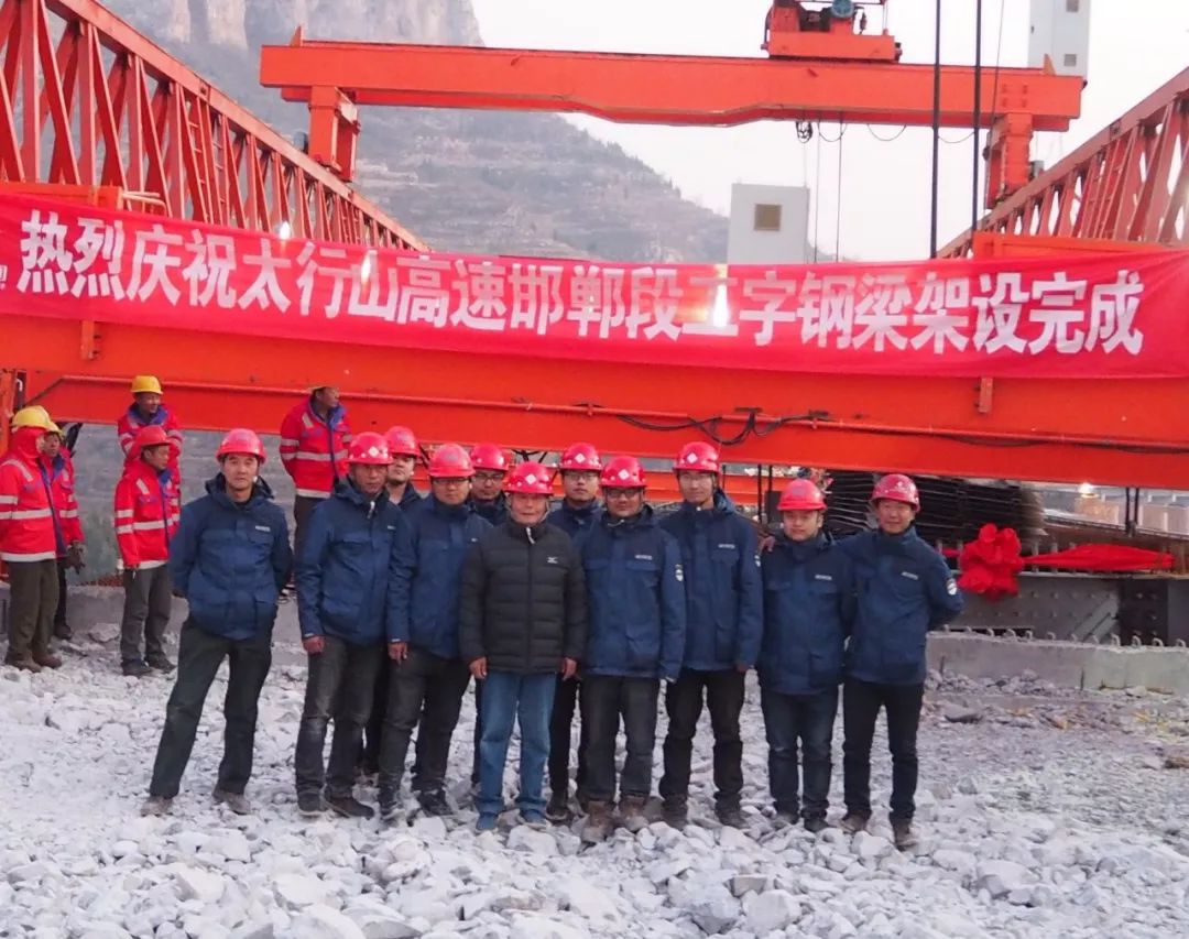 太行山高速公路邯鄲段海波重科承接內(nèi)容為全線11座鋼-混組合梁大橋中工字鋼梁的制造及安裝,全線鋼結(jié)構(gòu)工程量約31140噸。該項(xiàng)目地處太行山境內(nèi),地形、道路條件都極其復(fù)雜,施工難度巨大,工期極其緊張,工字鋼梁現(xiàn)場(chǎng)安裝工序繁瑣,現(xiàn)場(chǎng)建設(shè)拼梁場(chǎng),桿件運(yùn)輸至梁場(chǎng)后拼裝成榀,鋼梁總體采用架橋機(jī)架設(shè),這些因素均為完成本項(xiàng)目的工期目標(biāo)帶來(lái)了極大考驗(yàn)。在面對(duì)諸多困難的情況下,海波重科總經(jīng)理劉乾俊的舉動(dòng)極大的鼓舞了太行項(xiàng)目部,這也使得太行山高速公路邯鄲段全線11座工字型鋼-混組合梁大橋的順利貫通。