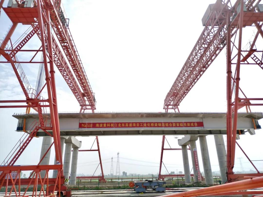 在經(jīng)過一系列工序轉(zhuǎn)換后,由海波重科承建的江北東高速項(xiàng)目工業(yè)化橋梁鋼混組合梁首吊成功,標(biāo)志著湖北省首例工業(yè)化橋梁實(shí)施項(xiàng)目正式邁入上部結(jié)構(gòu)沖刺階段。為江北東項(xiàng)目2020年建成通車奠定了堅(jiān)實(shí)基礎(chǔ)。