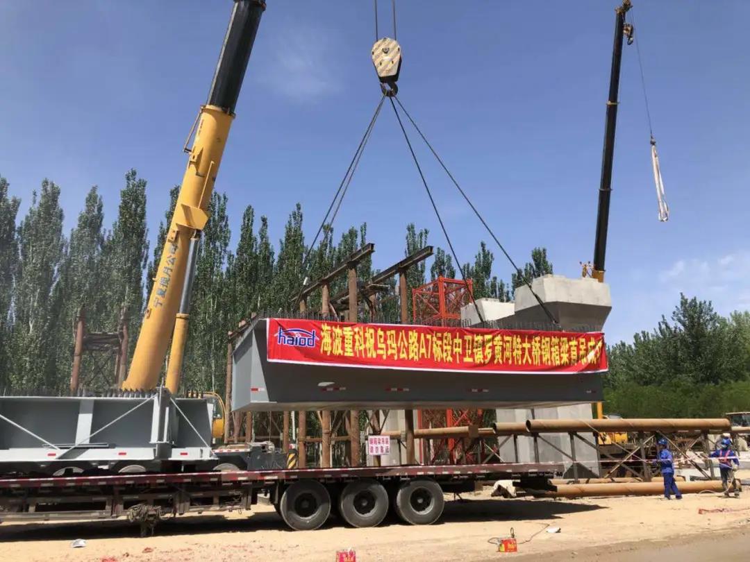 中衛(wèi)段A7標(biāo)鎮(zhèn)羅黃河特大橋在海波重科寧夏制造基地進行制作,是我司開拓寧夏及周邊省份橋梁建造市場的里程碑項目。本項目鋼梁板厚種類較多且均比較厚,對接焊位置焊接量大、焊接變形大。因而對鋼箱梁焊接收縮、變形控制、各向尺寸精度控制難度較大。同時,該項目業(yè)主及總包方均以魯班獎為目標(biāo),海波重科將以更高標(biāo)準(zhǔn)、更嚴格要求,統(tǒng)籌抓項目質(zhì)量管理,努力打造海波重科品質(zhì)工程,精品工程。