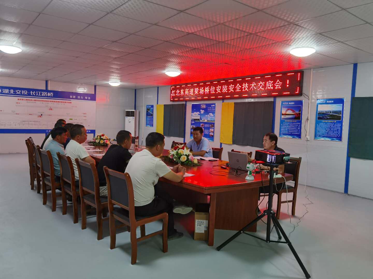 (海波重科新聞報道)2020年6月8日晚,為切實提升項目整體安全管理意識,有效提高作業(yè)人員安全技術(shù)水平,海波重科江北東高速項目部召開梁場橋位安裝安全技術(shù)交底會,海波重科項目經(jīng)理閆思為、生產(chǎn)經(jīng)理陳孝海、安全主管吳秋松、生產(chǎn)主管張林,架橋隊長熊明順等出席會議。