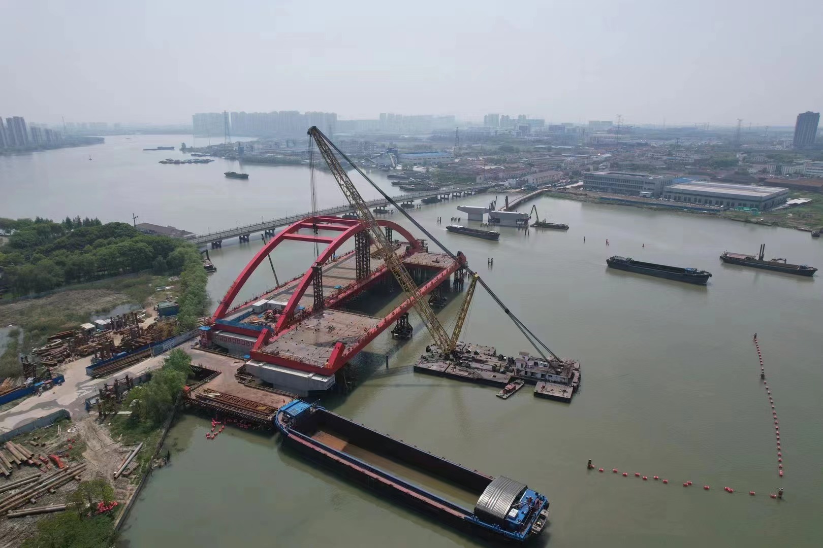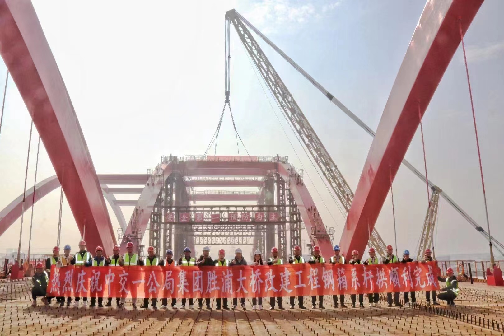 熱烈祝賀蘇州勝浦大橋鋼箱系桿拱順利合攏