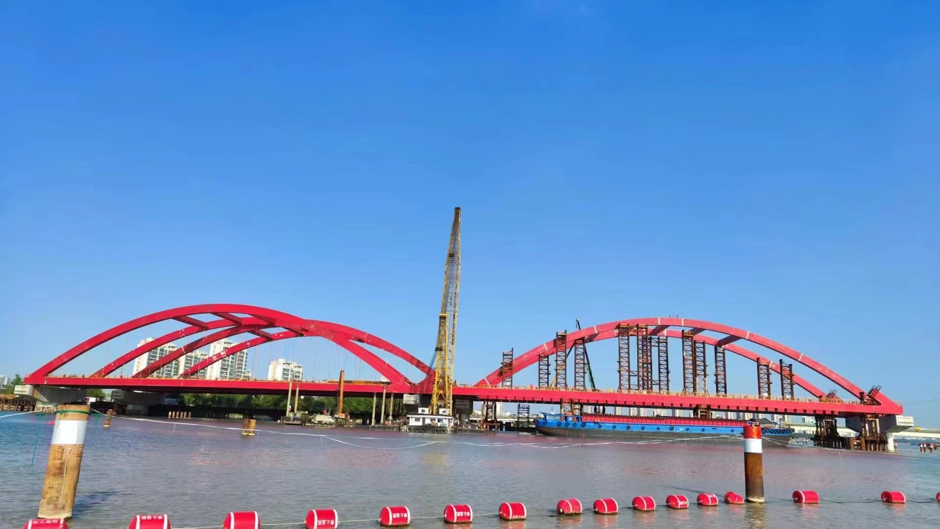 工程預(yù)計(jì)今年年底竣工。建成后的新勝浦大橋?qū)⒕徑鈪卿两瓋砂督煌ㄟ\(yùn)輸壓力,橋下空間還能適應(yīng)1000噸級(jí)船舶大型化和集裝箱運(yùn)輸,節(jié)約運(yùn)輸成本。將會(huì)給吳淞江兩岸居民交通出行帶來(lái)極大便利,也是加快構(gòu)建長(zhǎng)江三角洲地區(qū)高等級(jí)航道網(wǎng),促進(jìn)上海國(guó)際航運(yùn)中心建設(shè)的重要一環(huán)。